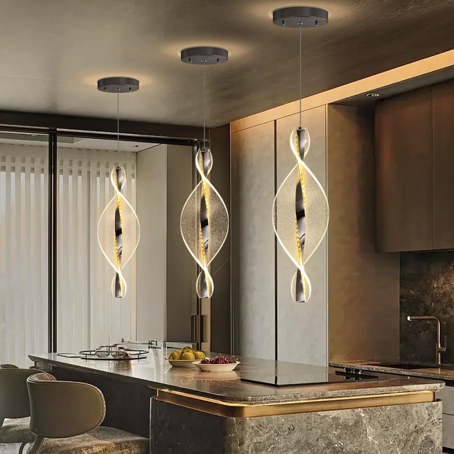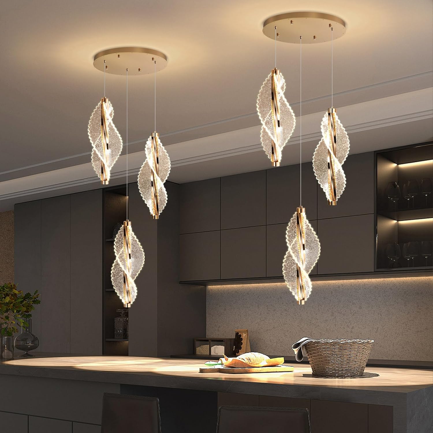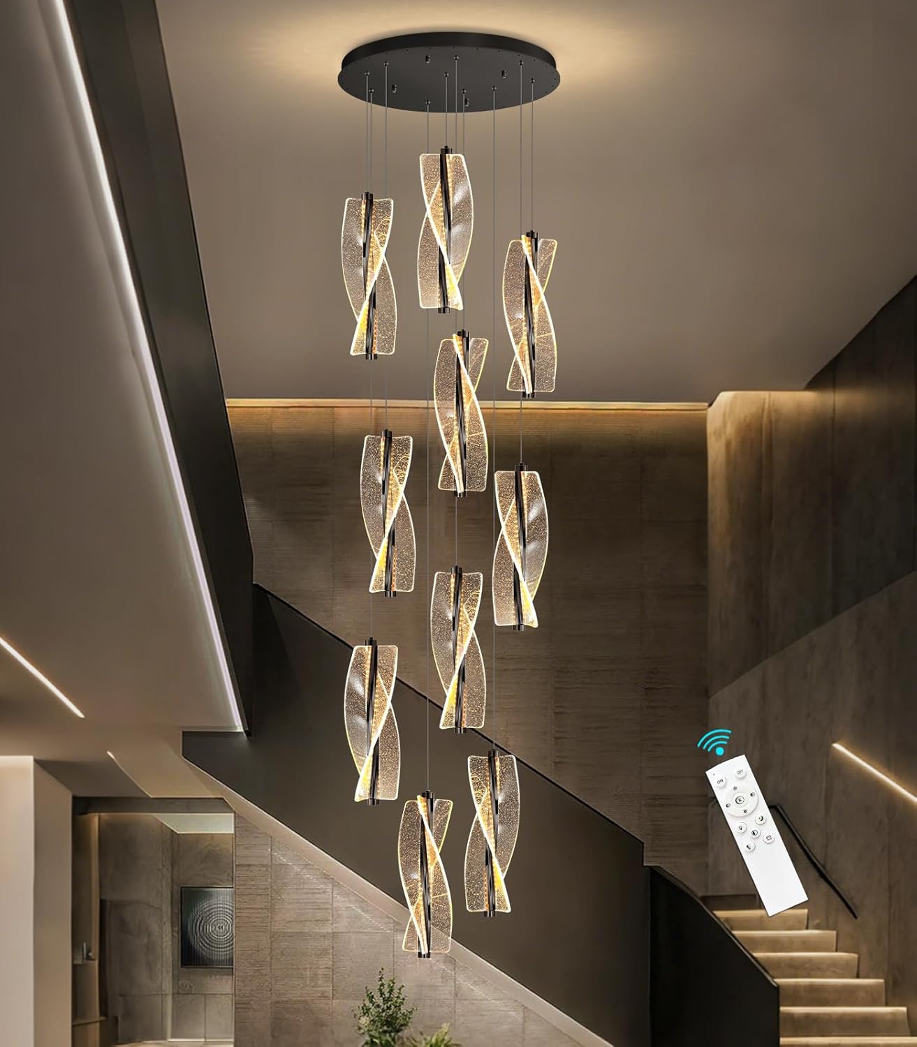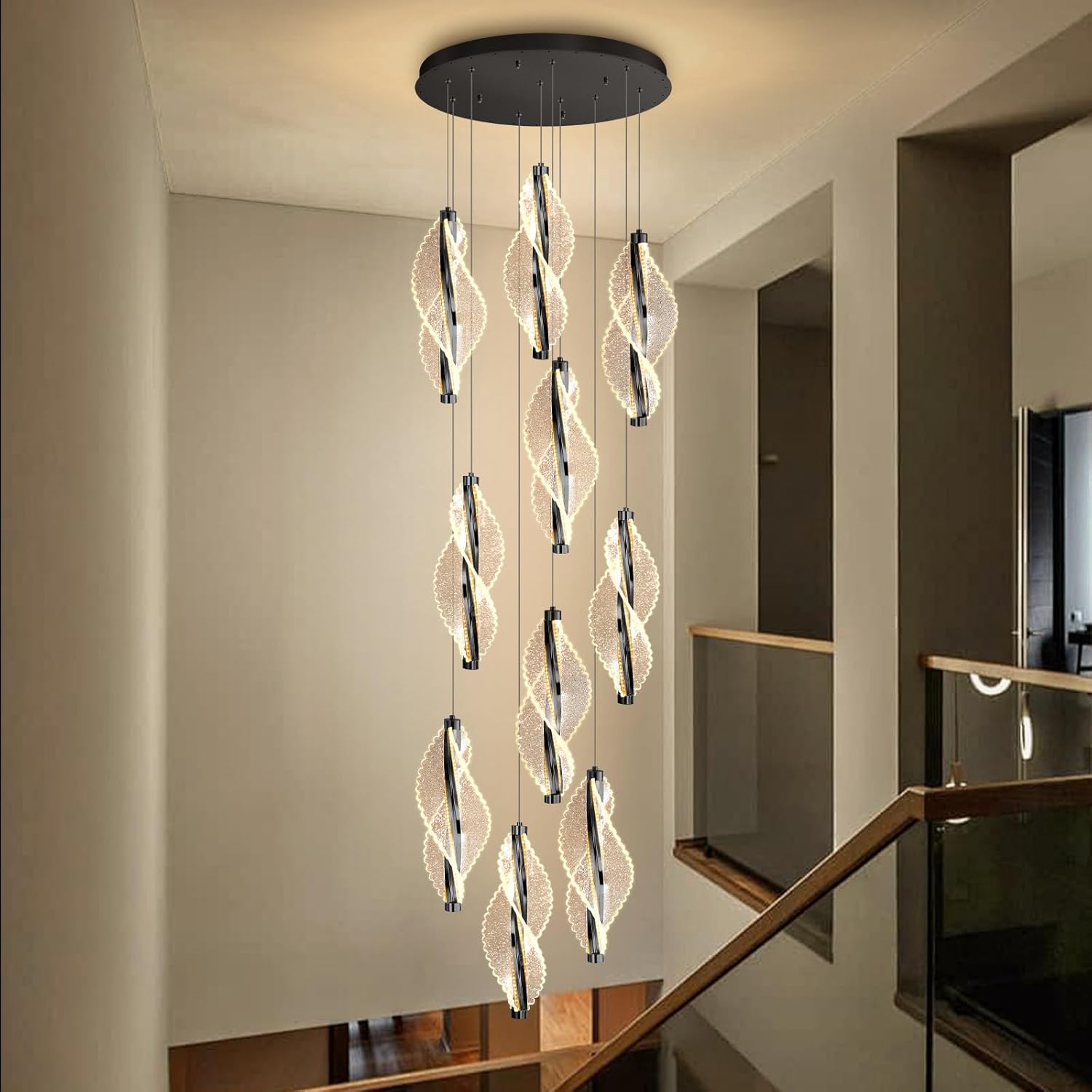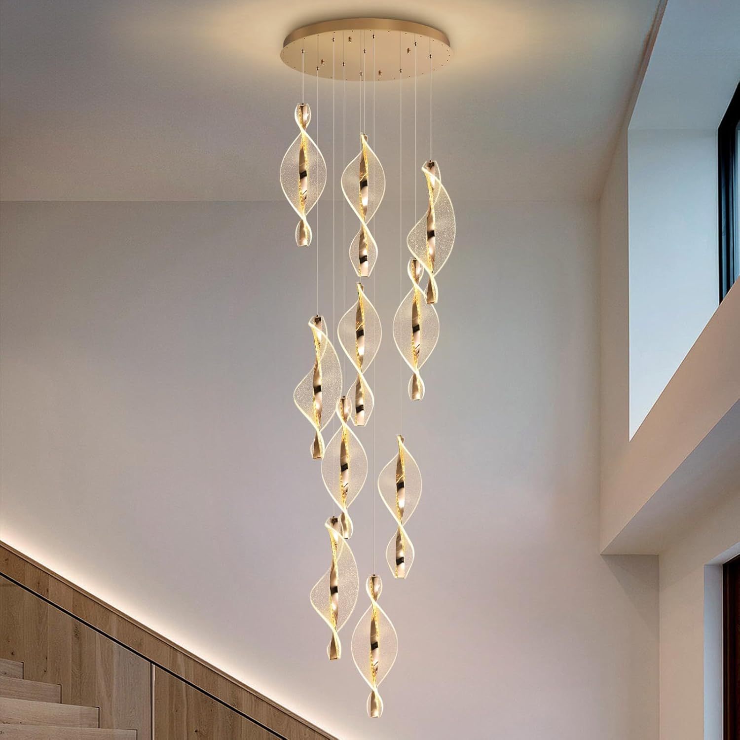 5-Light Gold Modern Chandelier Dimmable Light Fixture High Ceiling Chandelier for Foyer Acrylic Chandeliers Adjustable for Staircase Living Room Enterway Corridor LED Included