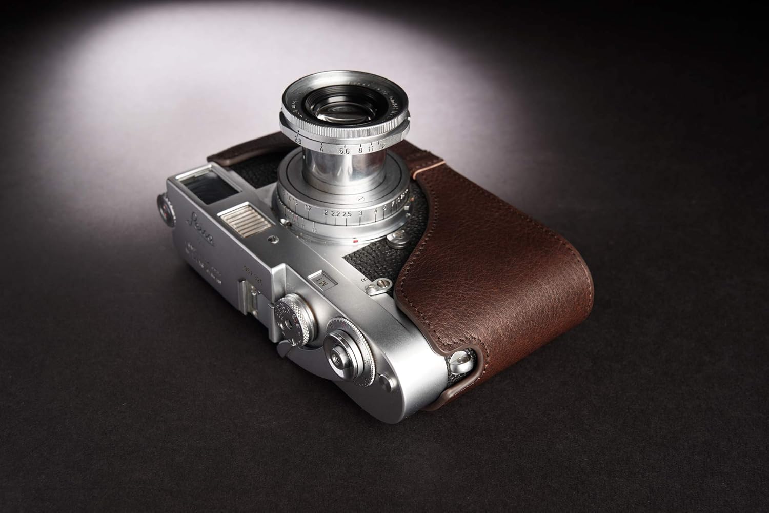 This camera is made by real top layer oil leather, the design is simple and vintage, use Metal sizing techniques make it very fit with the camera body. Inside lining use high lever velvet to protect camera body for scratch and coloration. Under base screw is made by copper and it can easy take off by coin. You don't need to take off the half case when you use tripod. It has a special design for Leica M6 M4 M3 M2 M1 MDa Film Camera, Camera which makes it easy to turn over the Screen and it will totally not affect screen rotation. You don't need to take off the half case when you connect data lines. Content: 1 x camera half case, camera not included. Material:Genuine leather.