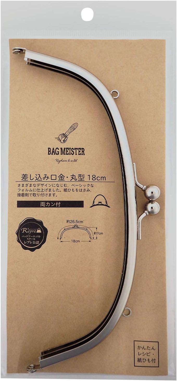 It has a basic form that goes well with a variety of designs. We also pay attention to the size of the ball with a luxurious slim opening and a good balance. The sizes are easy to understand and the variations of "can" can be chosen according to the application. 2.4 - 3.9 inches (6 - 10 cm) (single ring) (4.7 - 7.1 inches (12 - 18 cm)) (single ring) and (two rings) that can be used with the shoulder strap. 8.3 inches (21 cm) and 9.4 inches (24 cm) are easy to use with a clutch bag. Comes in 2 types: a sleek "can" and a "double ring". Clip the paper string and attach it with glue. Includes paper string and easy recipe Size: 8 sizes(6cm, 8cm, 10cm, 12cm, 15cm, 18cm, 21cm, 24cm) Color: 3 colors (gold, antique gold, nickel). What is Bag Meister? Professional bag making tools and materials. The tools and materials used by craftsmen are easy to use The lineup of materials has a basic form that does not interfere with the design of the artwork. Recommended for those who want to make authentic bags and leather crafts. There is no longer enough bag making but a convenient item for leather craft. Bagmeister comes with the "just what you really need" that our craftsmen use them. Developed in collaboration with Bag Artist School "Lepre". The certainly idea of "Repre" school that conveys the technology and know-how. Through the development and procurement of Kiyohara, we continue to create a variety of products. What is Bag Artist School "Lepre" This bag school was operated by Kawasakiya, a bag manufacturer founded in 1970. We convey the craftsmanship and know-how of bag craftsmen in order to make it easy to understand Established in 2004 for the popularity of bag making technicians. Currently we operate bag schools in Tokyo Shinjuku, Osaka Ummeda, and Aichi Ichinomiya. There are practices in Tokyu Hands and Vogue Academy and nearly 1,000 graduates. In recent years, students have increased at a pace of 100 to 150 people per year. There are many women in their 30s to 50s, and more men are gaining. Set Contents: Paper string and easy recipes to learn how to put them on. (From Amazon.co.jp)