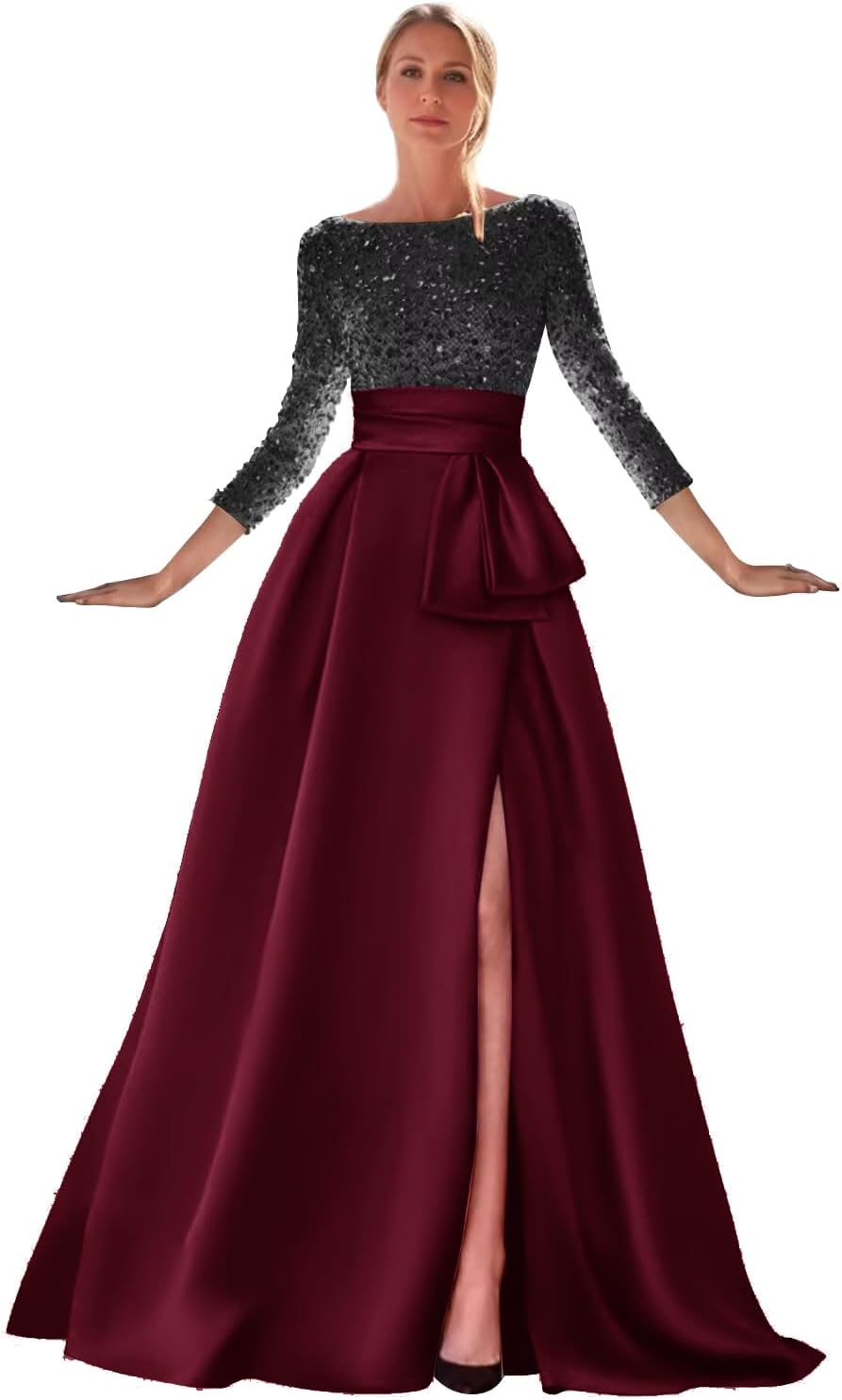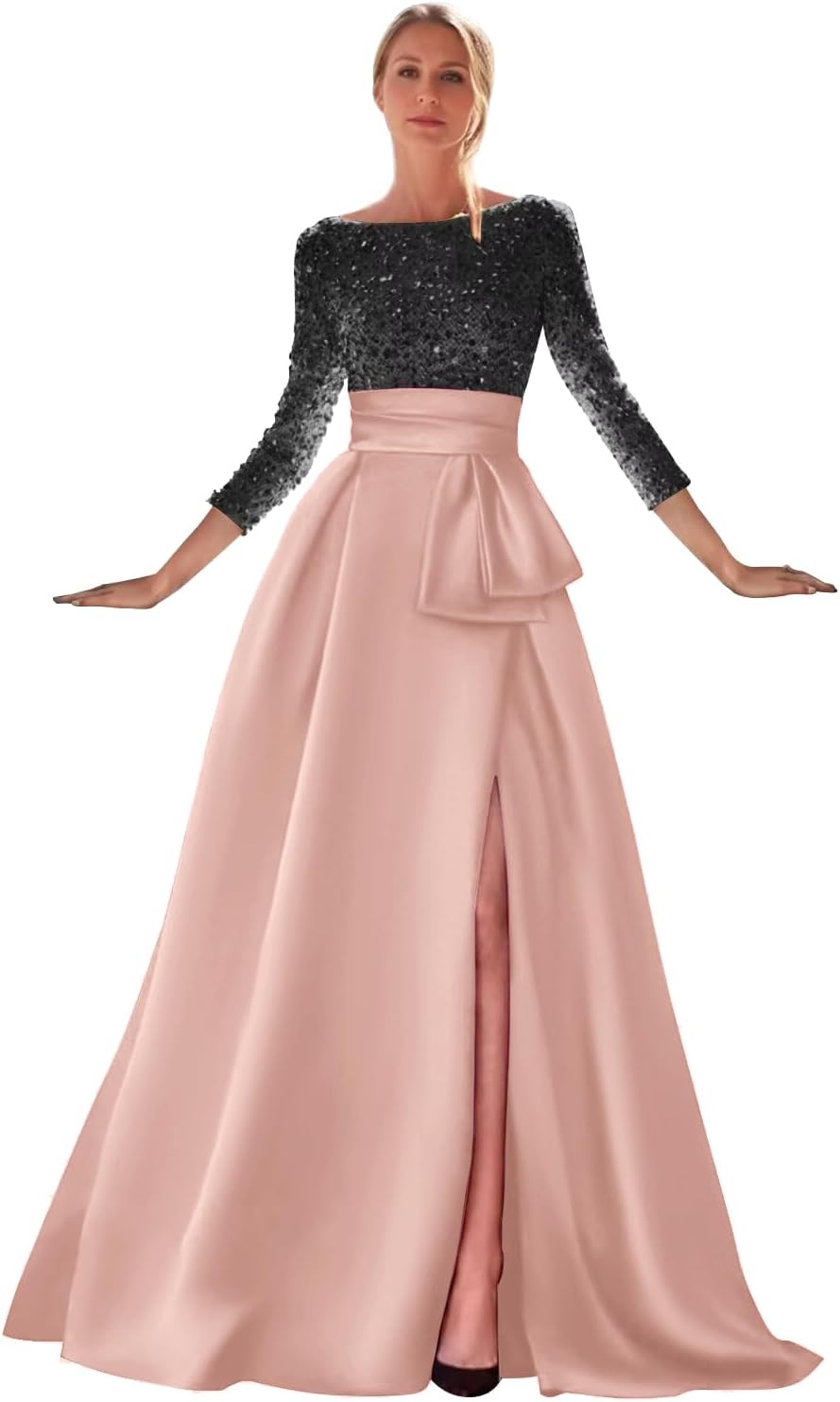 Welcome to XsqmbwbWe wish you to be able to choose a beautiful dress that suits you.We will provide you with bridesmaid dress,evening dress,prom dress,homecoming dress,cocktail dress,wedding dress.the business philosophy of our store is to provide customers with satisfactory products and services,to become customers' friends,not just for sellersDress DetailFabric:Sequin/Satin Feature:Long Sleeve Sequin Prom DressesBoat Neck Satin Formal GownsSequin Satin Long Ball GownLace Up ClosureLong sleeve,boat neck,side slit,built in bra,long formal ball gownHow to choose size:Please refer to the size chart on the left side of the product page to select a size,pay attention! ! ! if you are not sure which size to choose,you can choose One Size,One Size in our store represents customized size,if you need to customize, please send us your measurement details as list:1.Full Bust _____ inch or ___ cm2.Waist _____ inch or ___ cm3.Hips _____ inch or ___ cm4.Shoulder to Shoulder ____ inch or ___ cm5.Hollow to floor (Shoulder to Feet without shoes) ___ inch or ___ cm6.The height of heel shoes: _____inch or ___ cm7.The date you need the dress:____Notes:1.Due to the difference of the display, please allow a slight color difference between the received dress and the picture2.Please allow 1-3cm differs due to manual measurement.