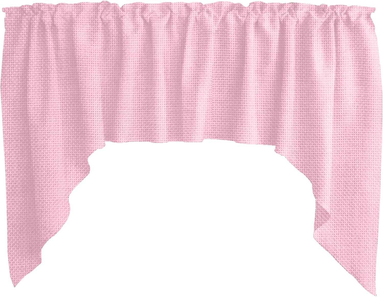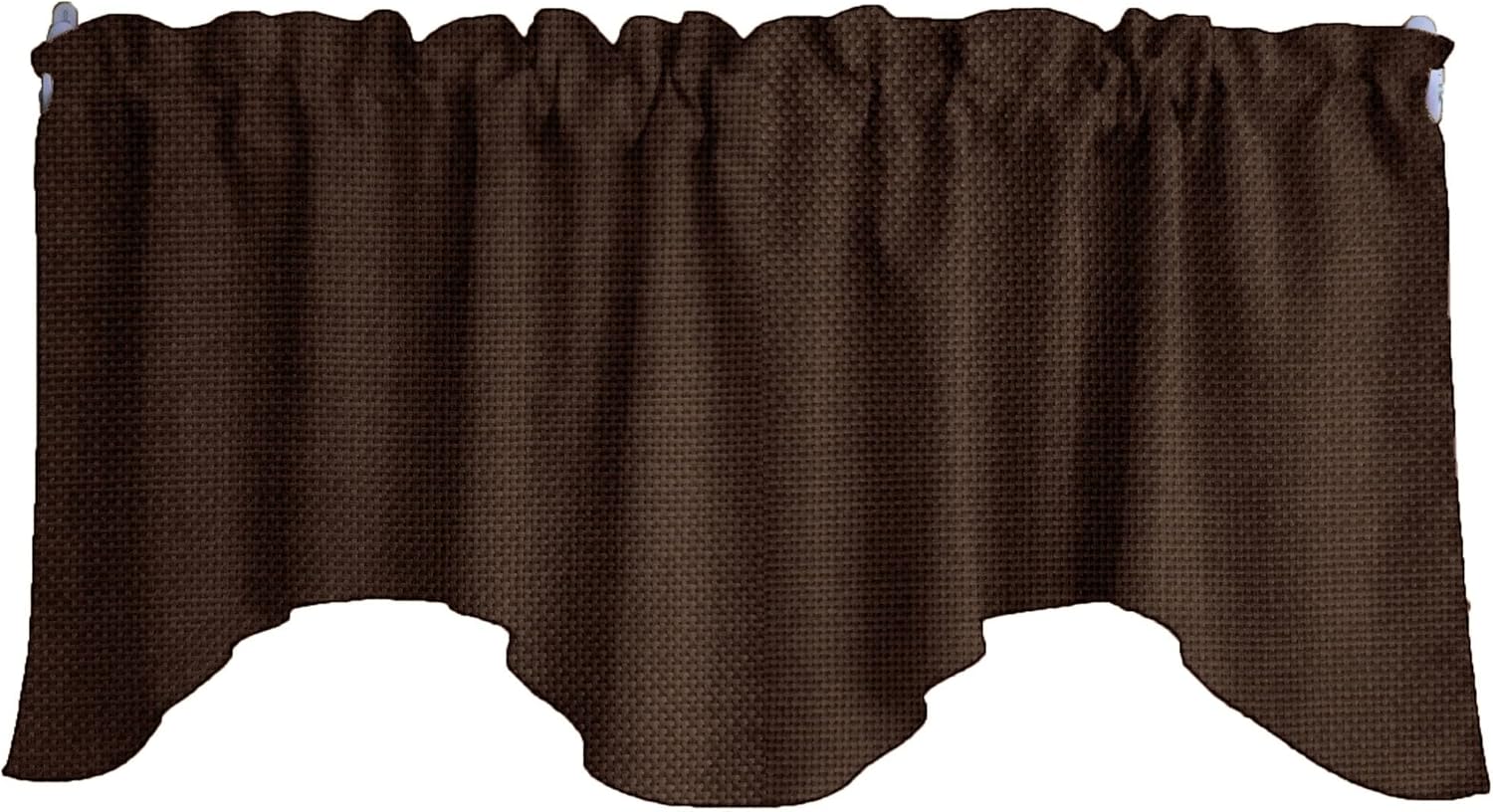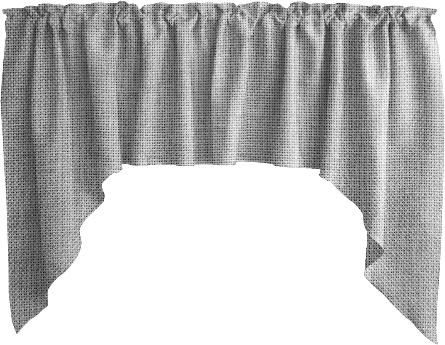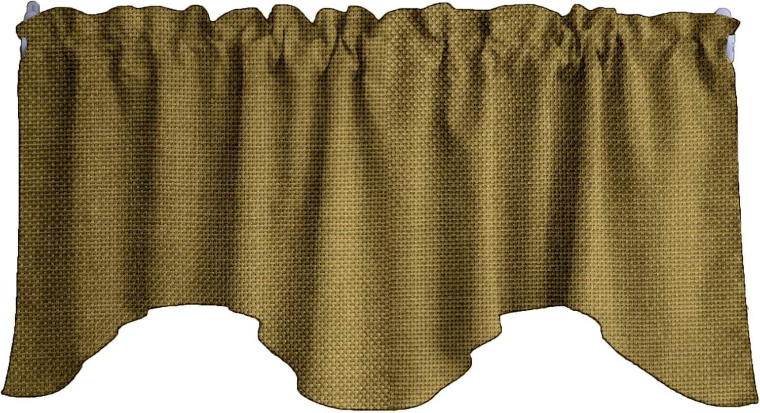 Scalloped valance set made from a Faux burlap woven textured fabric. This includes a valance with the measurements of 72" wide and 36" tall swag ends, the middle is 18" tall from the top edge. One inch header above a two inch pocket at the top of the valance. The colors of products when viewed on your computer monitor may appear different than the actual color of the merchandise. We make every attempt to give you a good representation of the available colors for each product sold, but unfortunately we cannot guarantee an exact match. Please contact us for swatch samples or custom size requests.