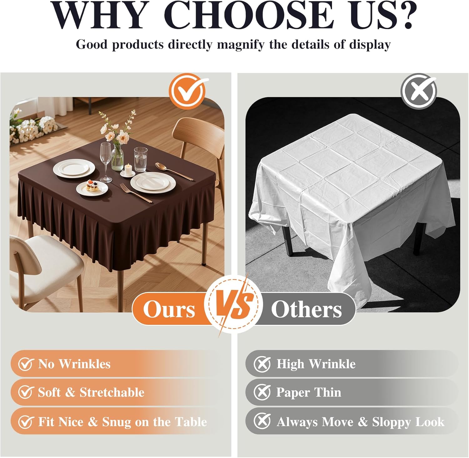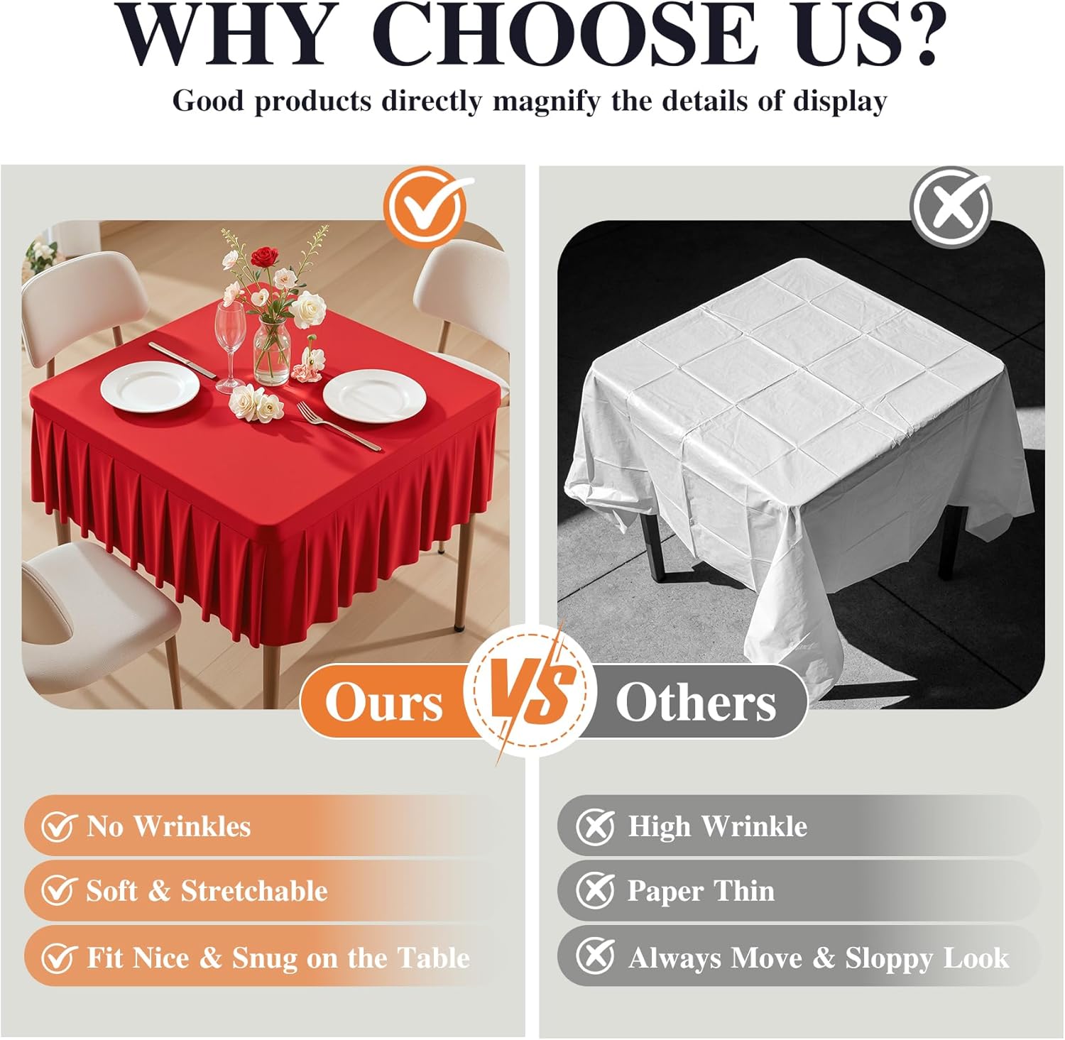 These square stretch table clothes are made of elastic spandex material for daily use and repeated washing, keeping your tablecloth looking fresh and vibrant. Easy to put on, easy to remove. Perfect for both everyday and special occasion use, for doing crafts or playing cards.
