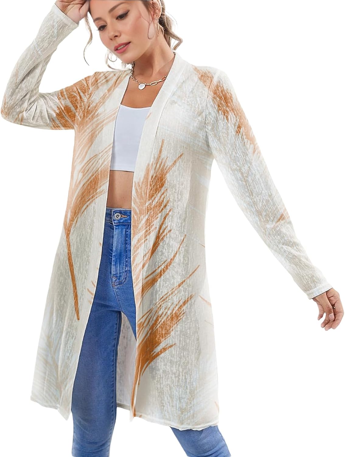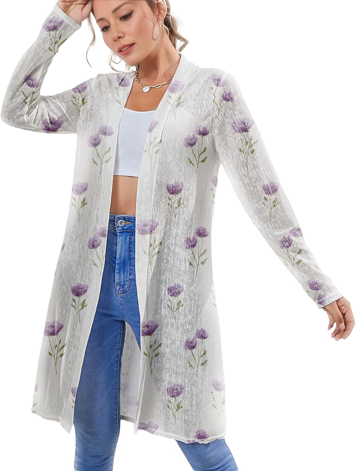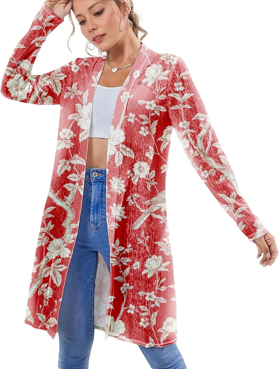 Biacolum Sweater Dress for Women Lightweight Casual Daily Wear Light Cardigans Open Front Floral Graphic Fashionable Long Sleeve Oversized Plus Size Hawaiian Vacation Summer Sweater
